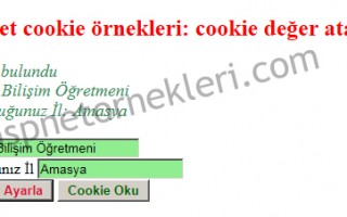 Asp.net ile kullanıcının girmiş olduğu bilgileri cookie olarak ayarlayabilirsiniz kullanıcı adı, şifre.. gibi cookie ayarlamak için komutlarını, ayarlanan cookie bilgilerini okumak için komutlarını kullanıyoruz ilk olarak birinci butona basılınca textboxlara girilen bilgiler cookiornek değişkenindeki...