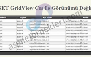 Asp.net sayfanıza eklediğiniz GridView nesneleri için visualstudio tarafından otomatik olarak tanımlanan biçimlerden sıkıldıysanız başka bir görünümde kullanıcılara sunmak istiyorsanız olaya birazcık css katarak bu sorunu çözebilirsiniz Uygulamamız sonucunda gridview görünümü aşağıdaki gibi olacak Görünü...