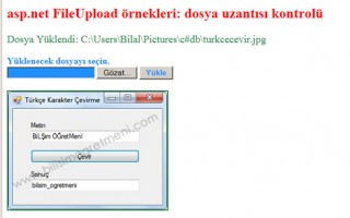Asp.net FileUpload ile dosya yüklenen dosyaları aynı isimle sunucuya kaydeder, yüklenen dosyaların ismini değiştirmek için FileUpload nesnesinin SaveAs metodunda dosyanın yeni ismi ve uzantısı belirtilir. “FileUpload1.SaveAs(yukleme + “yeniisim” + extension);” dosya adı yeniisim olarak...