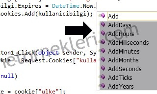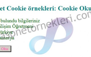 Asp.net ile kullanıcının girmiş olduğu bilgileri cookie olarak ayarlayabilirsiniz kullanıcı adı, şifre.. gibi cookie ayarlamak için komutlarını, ayarlanan cookie bilgilerini okumak için komutlarını kullanıyoruz ilk olarak birinci butona basılınca textboxlara girilen bilgiler cookiornek değişkenindeki...