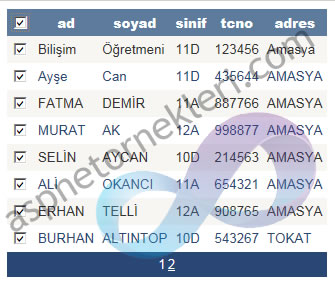 GridView ile listelenen kayıtlar üzerinde işlem yapabilmek için tümünü veya bazılarını seçmek gerebilir. GridView içerisindeki kayıtların tümünü seçebilmek için küçük bir javascript kodu kullanacağız