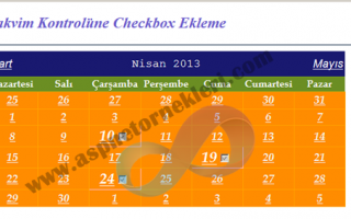 Sayfanıza eklediğiniz calendar (takvim) kontrolüne gün seçimini yapabilmek için gün hücrelerine Checkbox ekleme işlemi uygulaması Html kodları