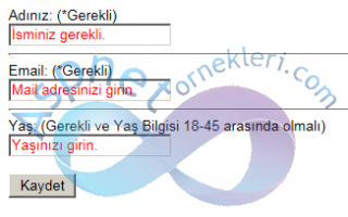 RequiredFieldValidator, RegularExpressionValidator, CompareValidator, RangeValidator ve CustomValidator ile yaptımız doğrulama ve kontrol işlemlerini hata mesajlarını ayrı bir label’de veya ValidationSummary içinde gösteriyorduk ama hata mesajlarını textbox içinde göstermek isterseniz aşağıdaki işlemleri yapmanız yeterli… Uygulamamız için...