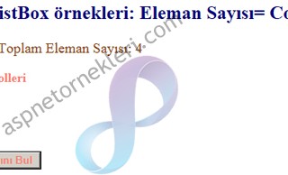 Asp.net ile listbox içindeki toplam eleman sayısını öğrenmek için Items.Count fonksiyonu kullanılır geriye sayısal bir değer döndürür. Komutun kullanım şekli “int elemansayisi = ListBox1.Items.Count;” gibidir uygulamamızda butona basılınca ekranda listbox içindeki eleman sayısı görüntüleniyor.