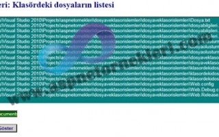 Asp.net ile bir klasörün içindeki dosyaların listesini öğrenebiliriz bunun için tasarım alanında form üzerine bir listbox, bir buton , bir textbox ve iki label ekliyoruz tasarım için gerekli kodlarımız.. Butona basdığımız zaman klasördeki dosyaları...