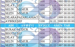 Bir önceki örneğimizde Asp.Net Gridview Seçili Satırı Renklendirme işleminden bahsetmiştik burada seçme işlemini kullanabilmek için Gridview içine Seçim için < asp:ButtonField Text = "Seç" CommandName = "Select" /> eklemiştik, şimdi ise seçme işlemi için...